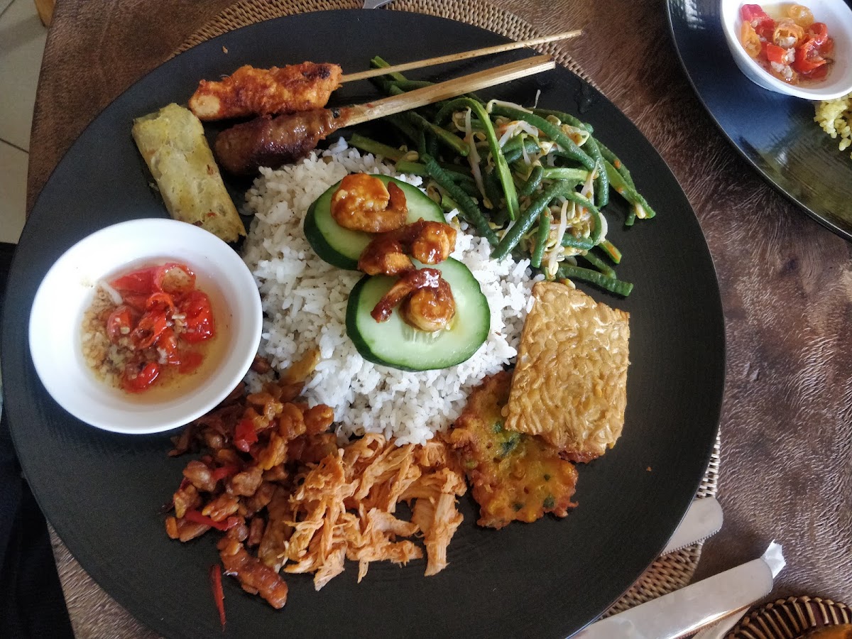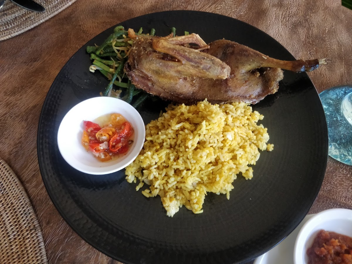 The restaurant's signature dishes are a celebration of Balinese culinary traditions, offering a delightful array of flavors that will leave your taste buds craving more. One of the most popular items on the menu is Nasi Campur, a delicious plate of rice served with a variety of flavorful accompaniments, including meats, vegetables, and sambal. It's a perfect representation of the diverse and vibrant flavors of Balinese cuisine. Another standout dish is the Bebek Garing (crispy duck), a local favorite. The duck is expertly cooked to perfection, with a crispy exterior and tender, juicy meat inside that’s sure to satisfy any meat lover.